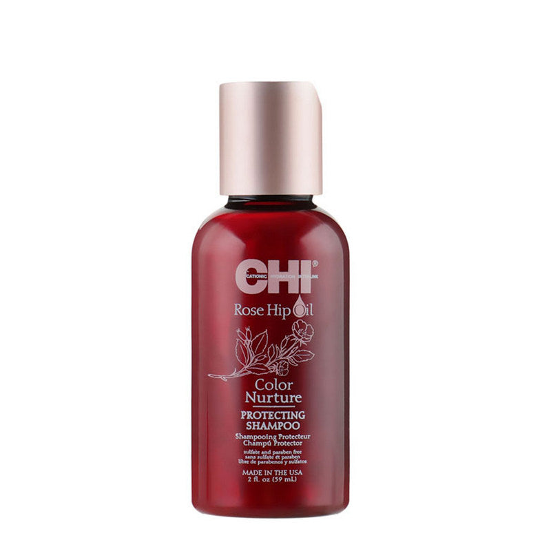 CHI saugantis dažytų plaukų spalvą šampūnas su keratinu ir rožių aliejumi Rose Hip Oil Color Nurture Protecting