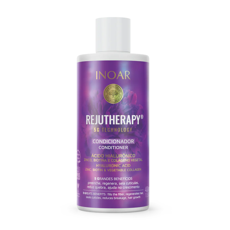 INOAR Rejutherapy linijos kondicionierius užpildo įtrūkimus plauko paviršiuje, regeneruoja plauko struktūrą, užveria plauko kutikulę bei didina plauko atsparumą nuo įvairių pažeidimų.
