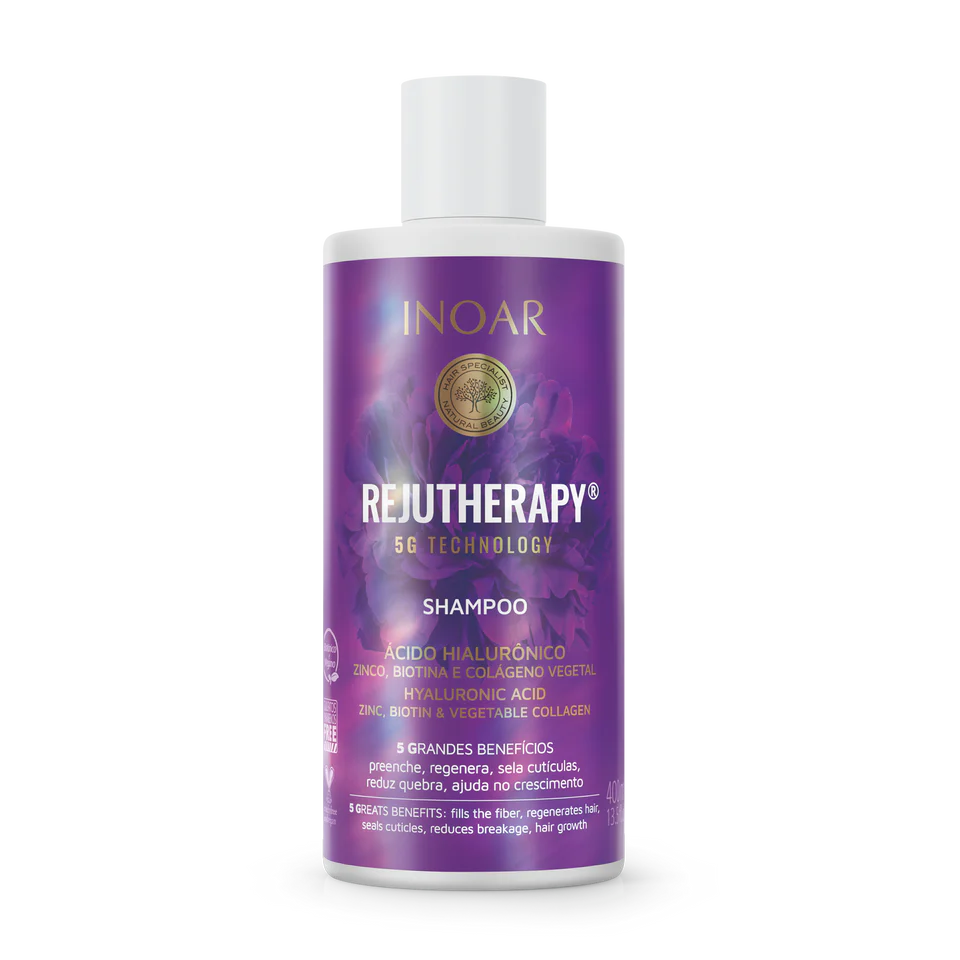 INOAR Rejutherapy linijos šampūnas praturtintas hialurono rūgštimi, cinku, biotinu bei augaliniu kolagenu. Šampūnas suteiks stulbinančius rezultatus ir užtikrins sveikų plaukų augimą.
