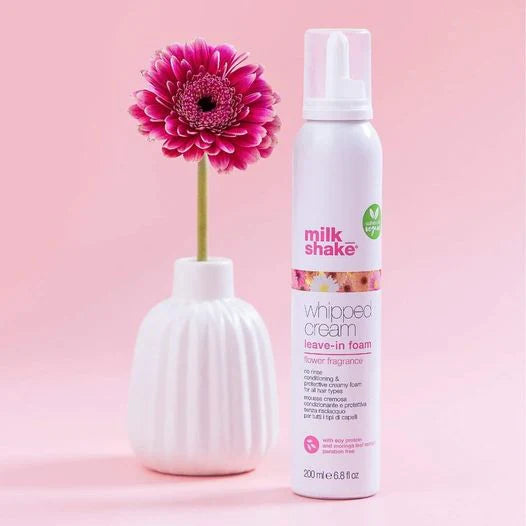 Milk Shake Whipped Cream Leave-In Foam Flower Fragrance yra nenuplaunamos kondicionuojamosios ir apsauginės kreminės putos, tinkamos visų tipų plaukams. Gaivios, saldžios gėlių natos suteikia šiam produktui išskirtinį aromatą.