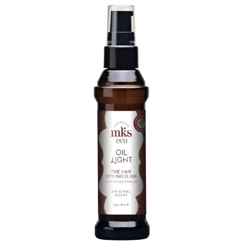 MKS-ECO „Oil Light For Fine Hair“ aliejukas veikia taip pat, kaip ir įprastinis, tačiau yra lengvesnės tekstūros ir padengia plaukus plonesniu sluoksniu.